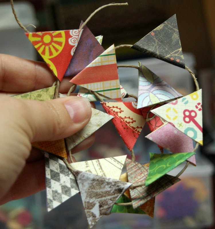 L'avantage d'utiliser vos retailles c'est que ce sont des papiers qui vous plaisent, vous aurez donc tendance à utiliser votre ruban de fanions... et y'a la bonne conscience écolo qui vient en prime!